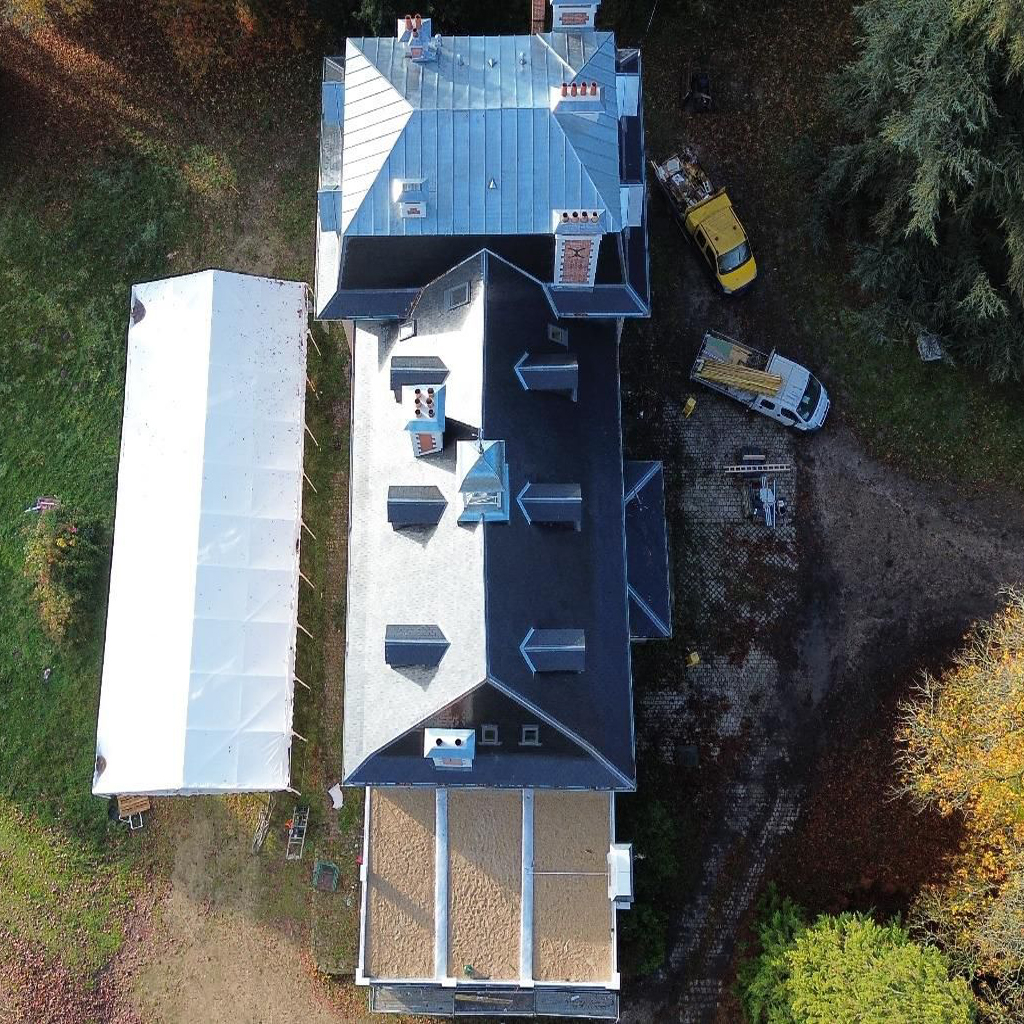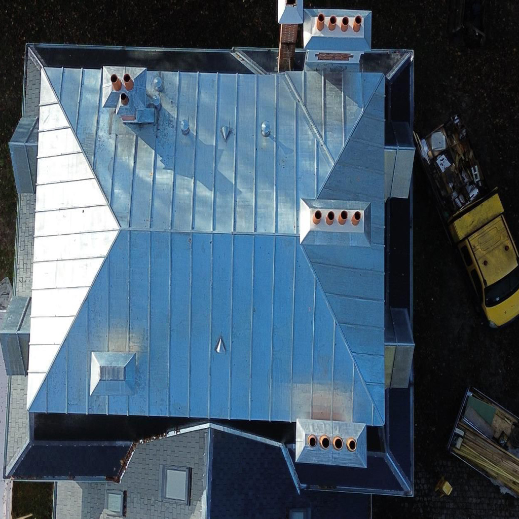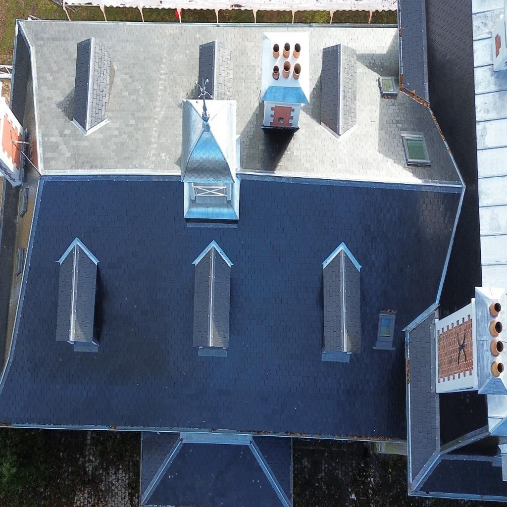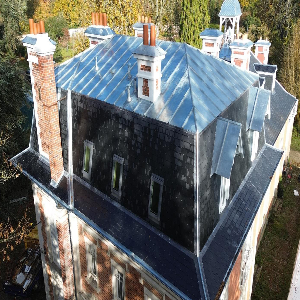 La toiture en tuile et la couverture en zinc