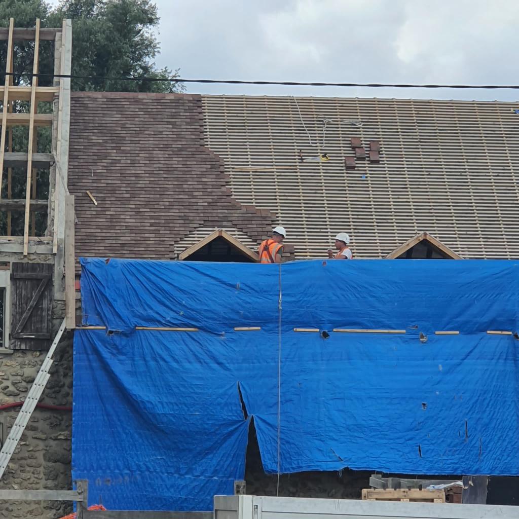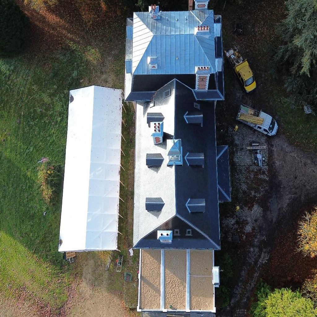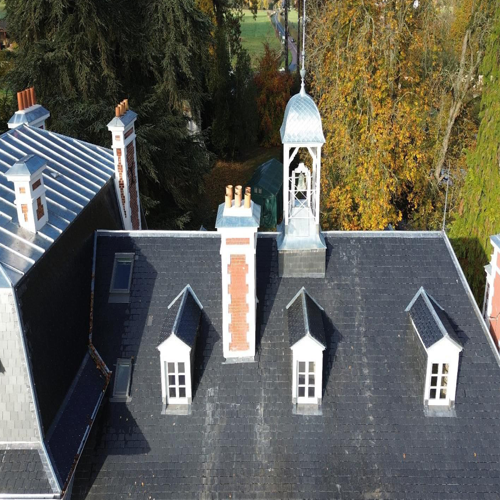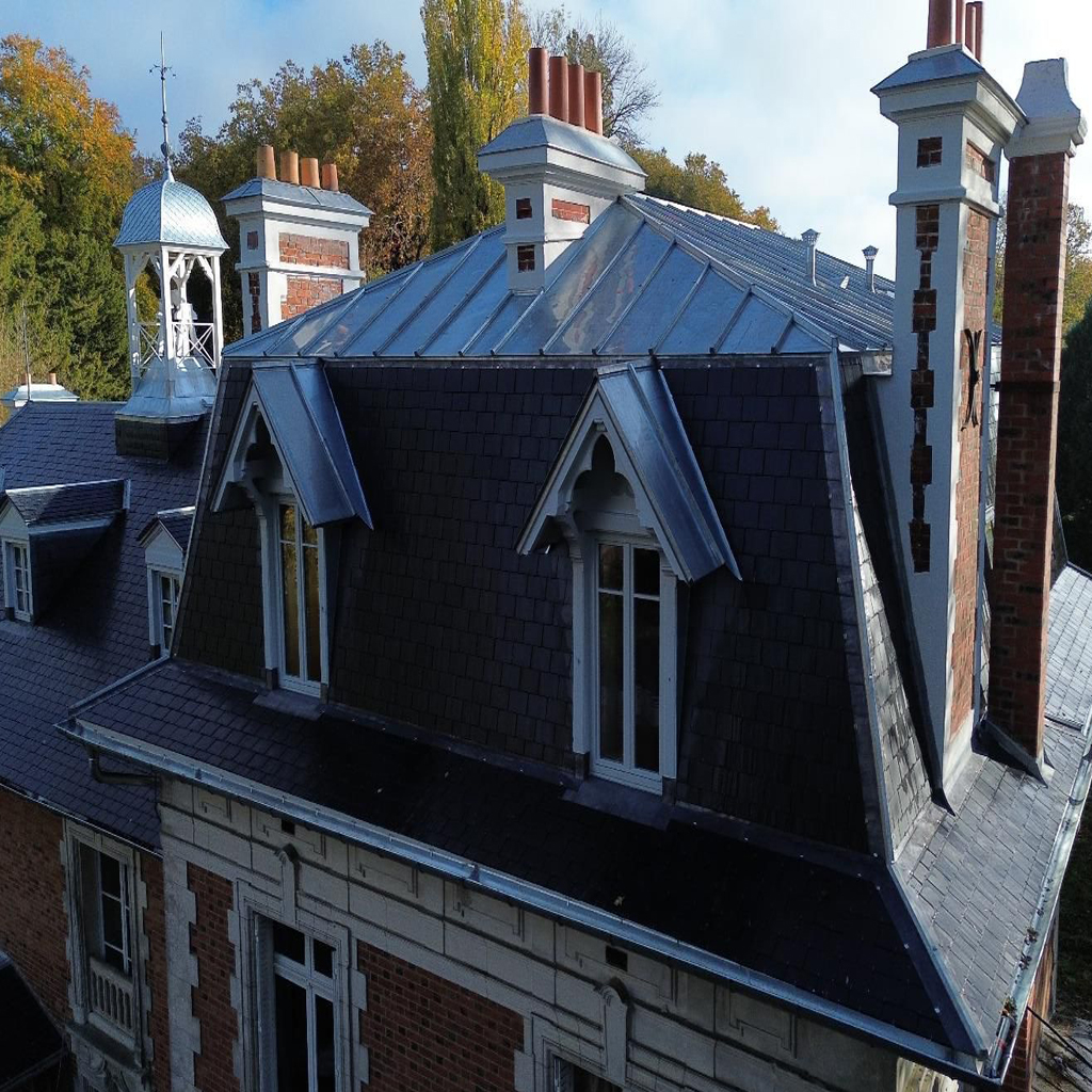 La toiture en tuile et la couverture en zinc